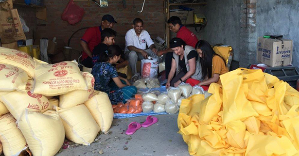 Caption: Members of The Salvation Army's international emergency services team prepare food for distribution in Nepal.