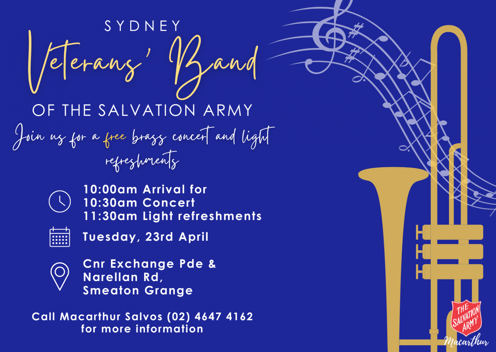 Macarthur Salvos will be hosting a concert by the Sydney Veterans' Band on Tuesday, April 23.