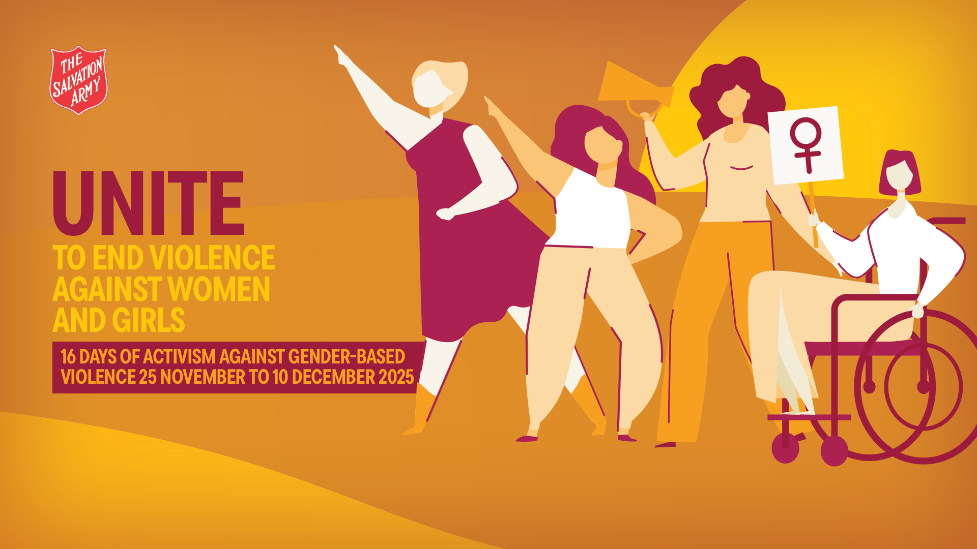 This year, The Salvation Army National Family Violence and Modern Slavery Stream is running a campaign for the 16 Days of Activism, centred on the theme — unite against gender-based violence.