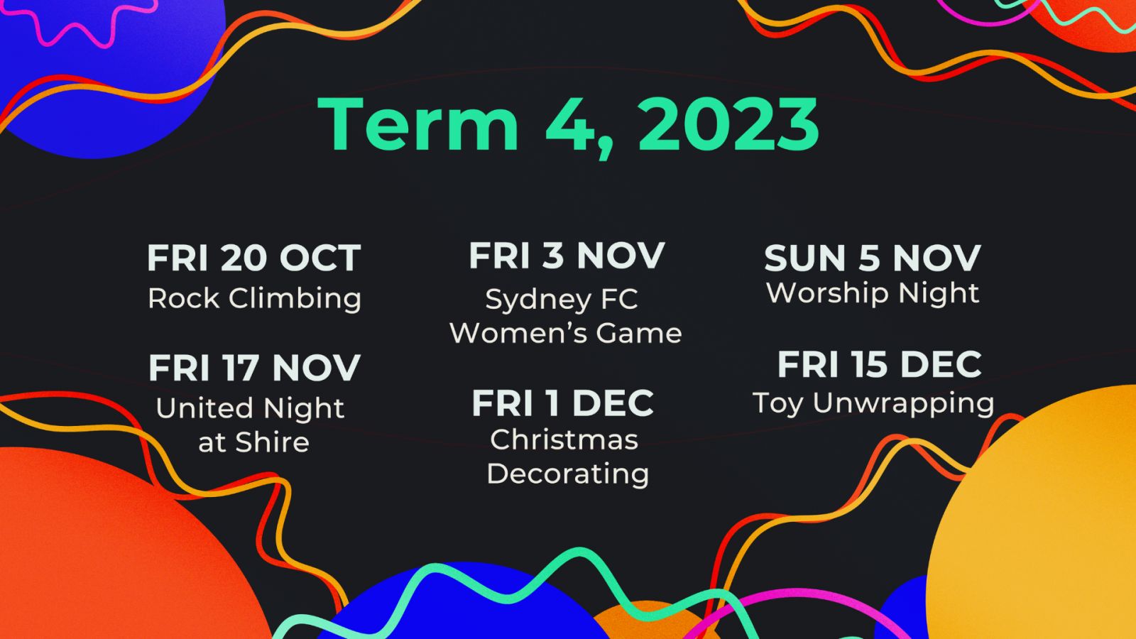Term 4 Youth & Young Adults Calendar