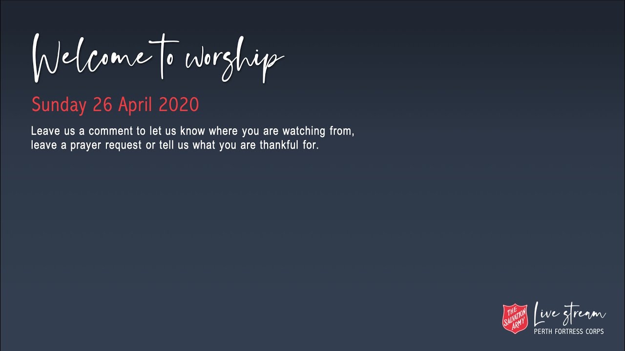 Thank you for joining us in our online service. Stay connected to us through: Email: perthfortress@salvationarmy.org.au Website: https://www.salvationarmy.org.au/pert... Facebook: https://www.facebook.com/perth.fortre... (Service is also available on Facebook)