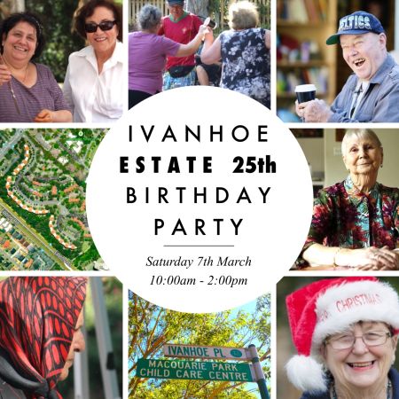 You are invited to the 25th Birthday Party of the Ivanhoe Estate in Macquarie Park! Built in 1990 this jewel in the crown of NSW Social Housing system has housed literally hundreds of families and individuals over the last twenty five years. To celebrate this occasion and the wonderful community who call it home, the Ivanhoe Estate Tenants Group (IETG) and The Salvation Army will be working together to organise a gigantic 25th Birthday Party!