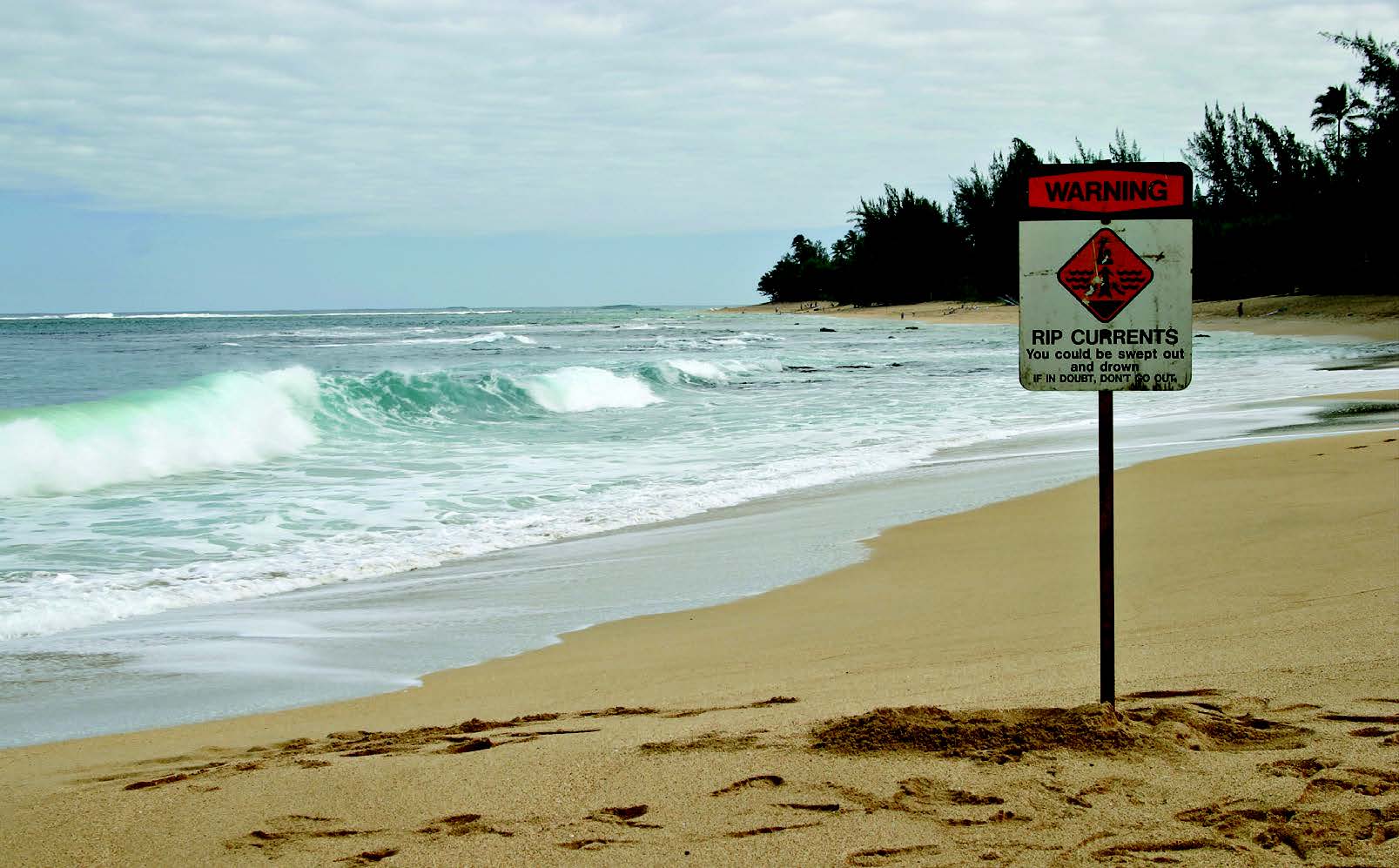 These powerful, narrow channels of fast-flowing water can move up to 2.5m per second, faster than an Olympic freestyler. Panicked swimmers often try to get out of a rip by attempting to swim straight back to shore, putting themselves at risk of drowning because of fatigue.