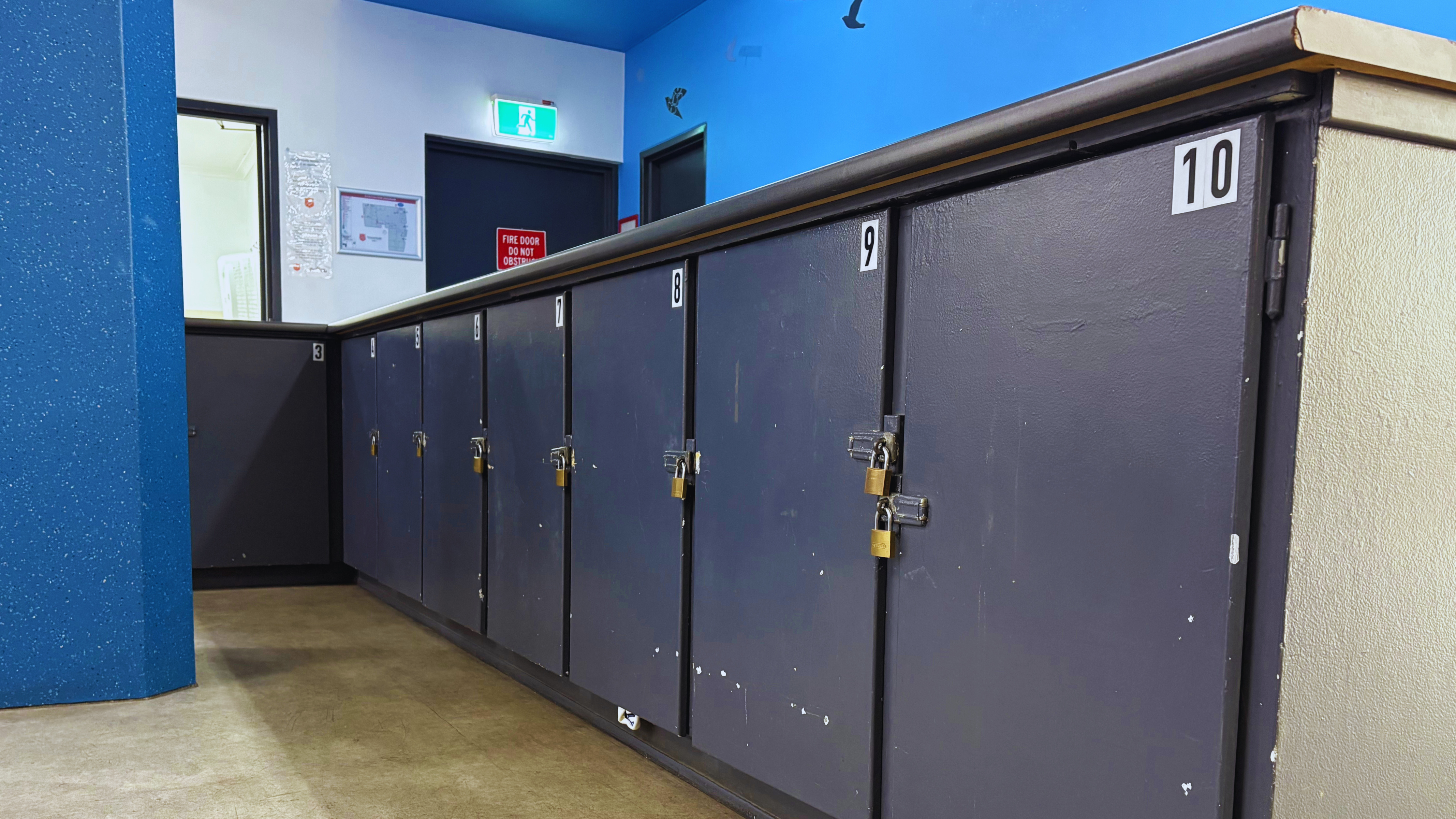 Lockers are secured with a padlock and key, provided upon allocation. Only the person named in the locker agreement can access the locker during centre opening hours.